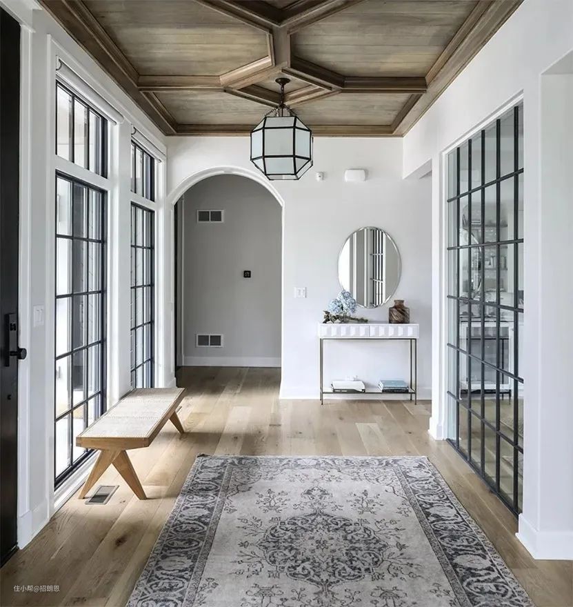 不少家居博主会在玄关处安装一面壁挂镜,不仅方便出入整理仪容,还能让人一进门就能感受到开阔和通透感。