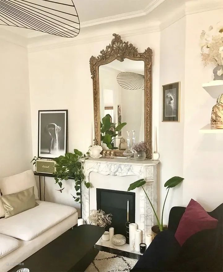 法式家居风格里,总少不了一面黄铜雕花镜,搭配烛台与壁炉,浪漫又复古。