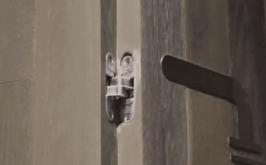 除了以上两种常用的,如果运用到旋转式的隐形门,那么会用到天地轴合页,安装及效果展示如下: