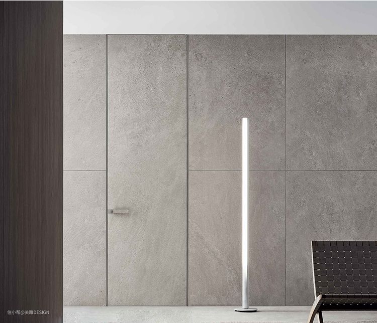 此类隐形门使用较多,能更好的隐藏门洞和提高墙面美感,根据墙面材质的不同而有不同的效果,常有以下几种: