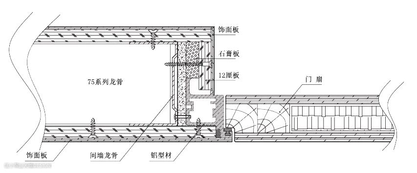 2)推拉式隐形门:常用在厨房门洞过窄的情况。节点图示意如下。如果厨房是双推门两侧都可以做成如下图结构。平时不用的时候推。