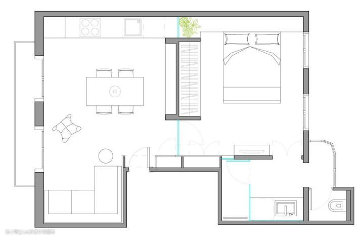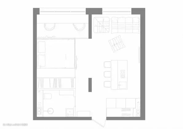 36㎡一室一厅,隔墙打掉,客厅和卧室都变大了 ▼