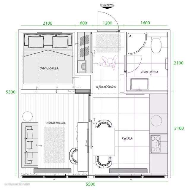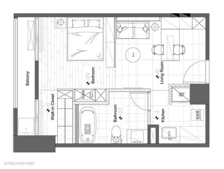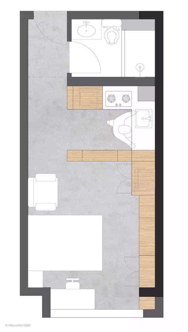 34㎡迷你小屋,卧室、餐厅、厨房一样不少,竟然连阳台都有 ▼