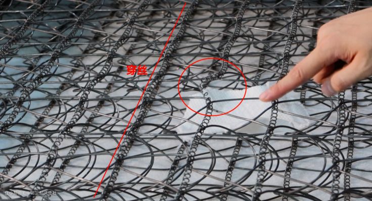 因为弹簧之间的连接都是通过这个穿丝固定在一起的,平时如果在床上时常进行“多人运动”,就会导致穿丝压力过大从而弯曲,这老哥的床垫只有一处弯曲,所以问题不大!