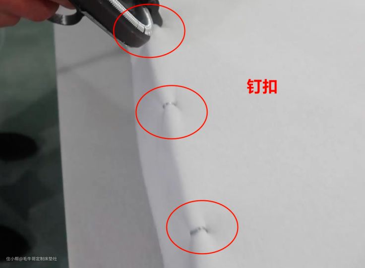 原本弹簧的围边,是用海绵和胶水进行固定,效果不好,也不环保。所以我决定在弹簧四周加入蝴蝶簧,用钉扣固定上下两层棉毡,加固效果好,还从根本上否决了胶水!
