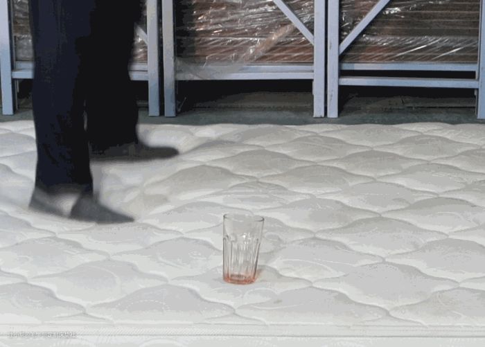 不得不说,舒达的妙而扣弹簧属实给力,我在床垫上来回这么蹦跶也不见水杯倒,怪不得这哥们睡了这么久,里面填充物都要到年限了,也舍不得扔,所以…你细品。