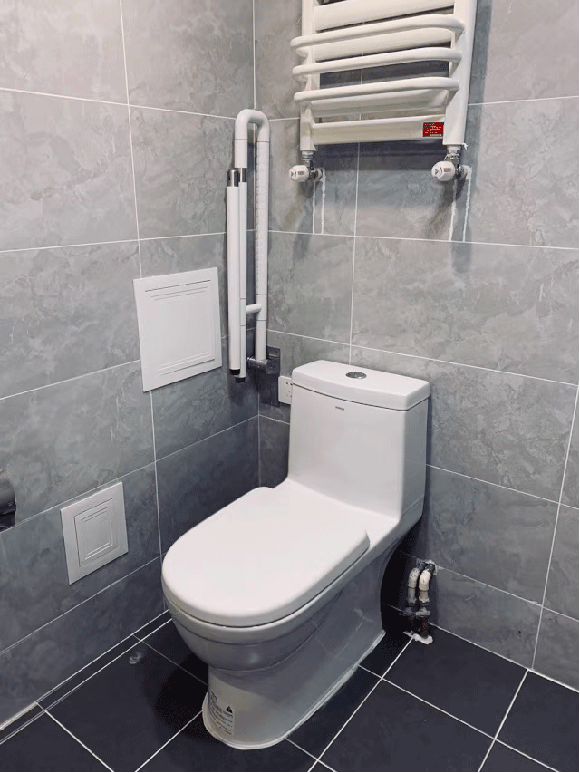在马桶、淋浴房旁边的墙上安装防水材质的扶手,防滑安全,更能方便父母的使用。
