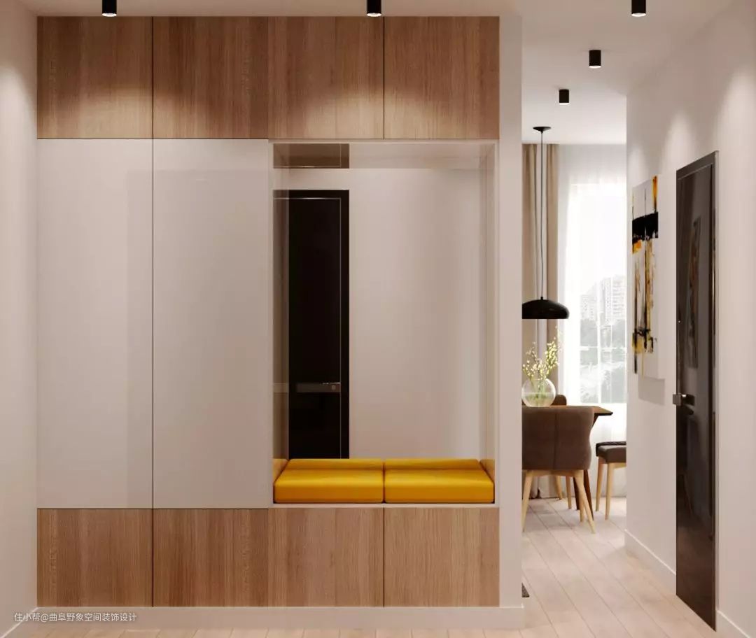 玄关的鞋柜处放一个穿鞋凳,老人腿脚不便,不适合蹲下。柜子不要高过头,抽屉不能低于腰,尽量让老人不踮脚少弯腰。