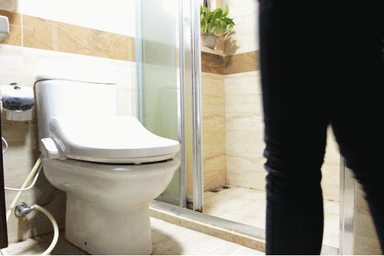 加热的便圈也提升了坐便的舒适感。感应开启的马桶盖也减少了老人弯腰的频率。