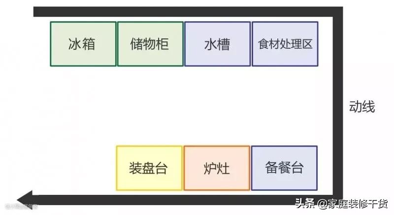 ①水槽的最佳位置是:水槽→操作台→炉灶。