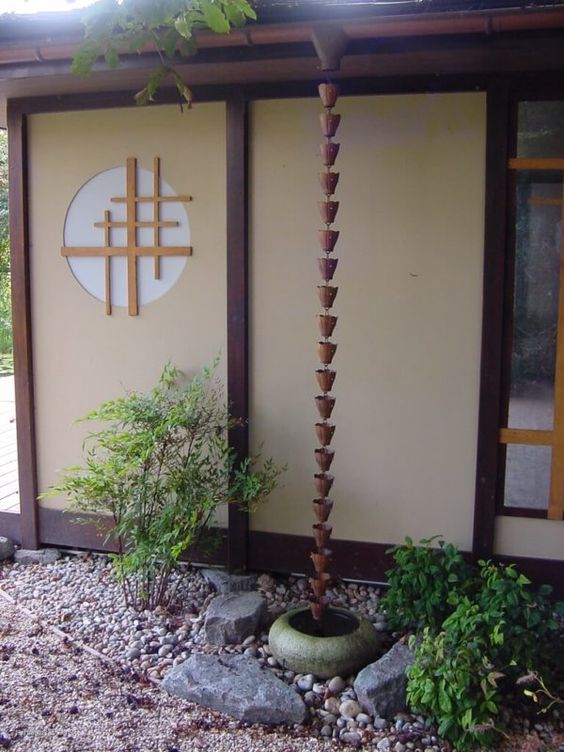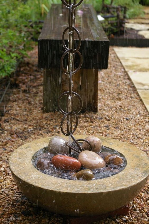 其实放在国内,即便没有雨链,我们也可以有样学样的,在下水管管口的位置稍稍布置下,避免雨水带走更多的泥土,将地面冲刷的不成样子,比如: