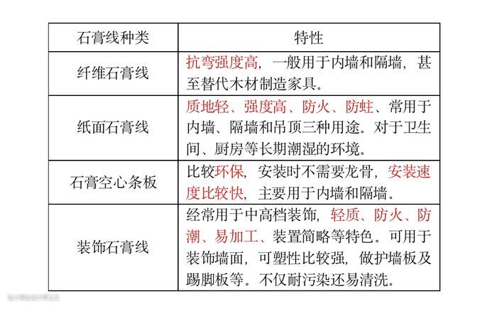 常见的石膏线材质主要有纤维石膏线、纸面石膏线、石膏空心条板、装饰石膏线4种,一般选用装饰石膏线居多(如下图)。