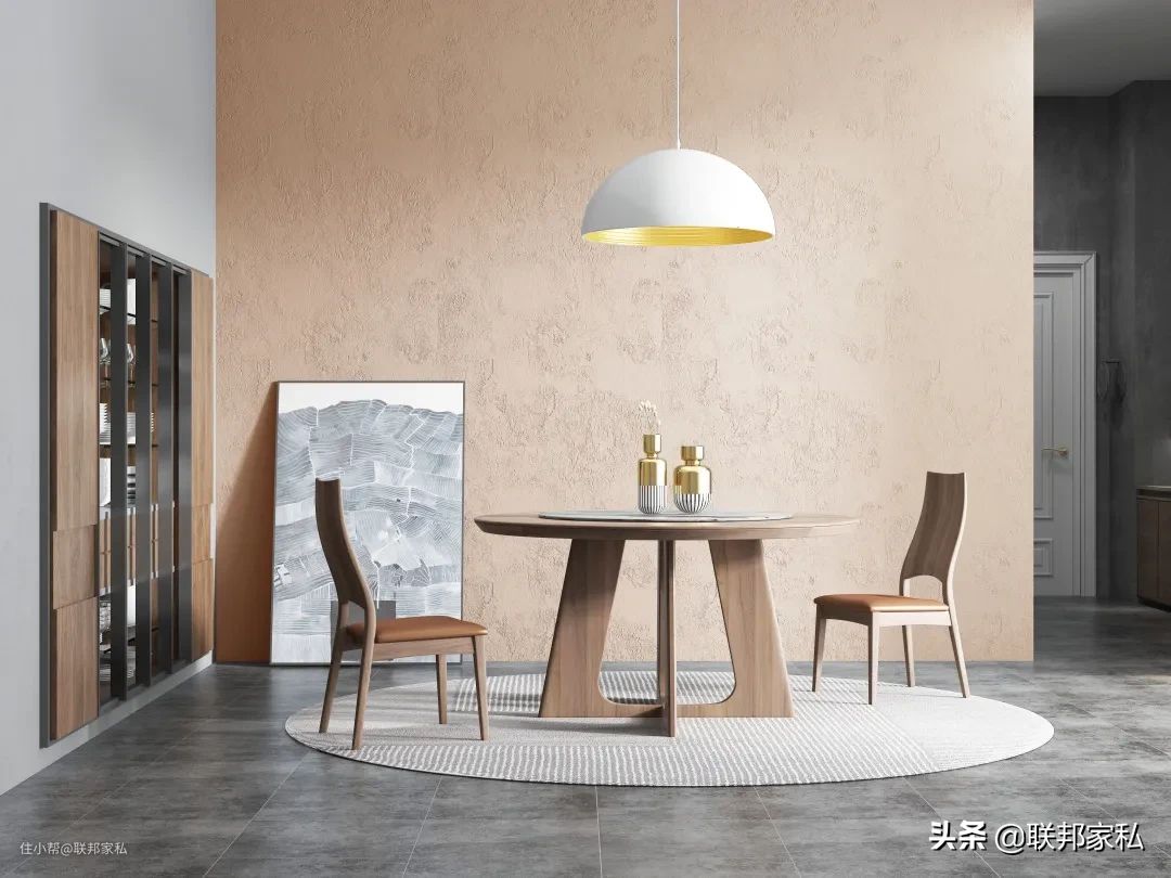 一半橙色,一半嫩粉,餐厅背景墙在Hermes橙中加入了淡淡的高级感,橙色皮革软包餐椅,兼具耐脏的功能性和设计造型上的美感需求,时尚之余还有一丝内敛和雅致。