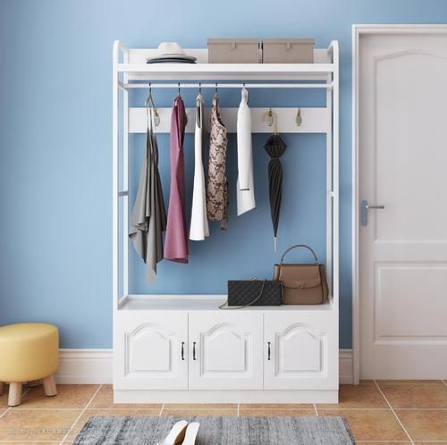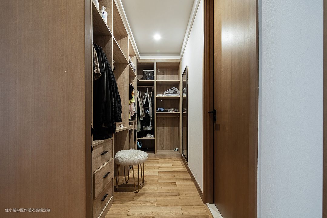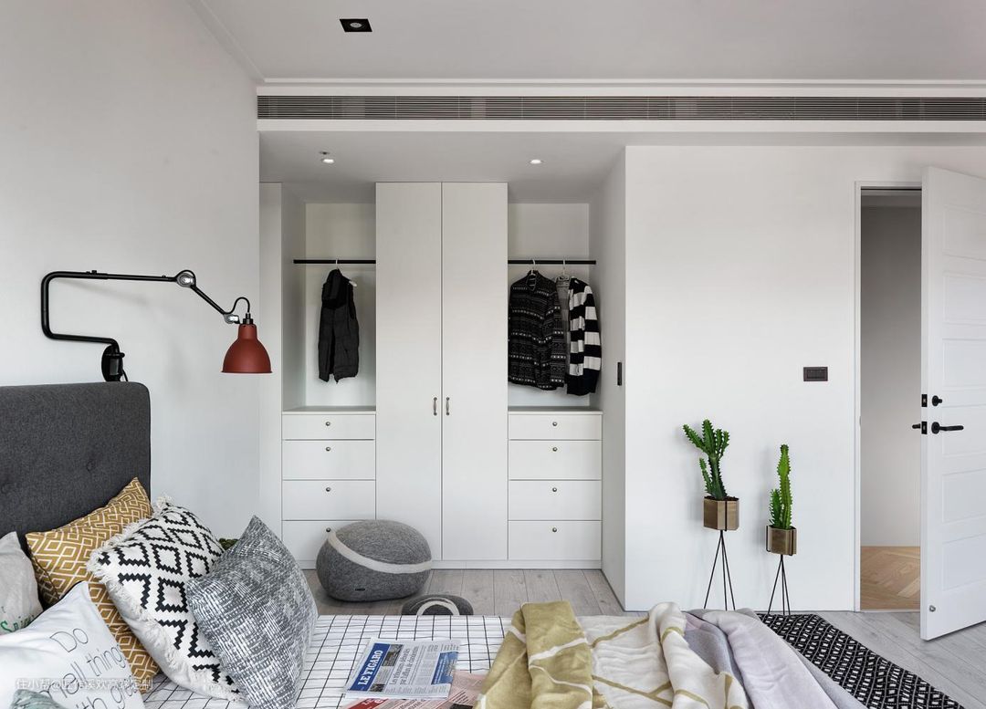 因为外套、牛仔裤与冬衣不会穿一次就洗,因此可以在卧房增加一处吊挂穿过的大衣或外套的空间,此类柜体多会采取开放式的方式进行,且吊杆宽度可放4~5件衣服即可,或是也可以在玄关处设置衣帽柜让穿脱更加方便。