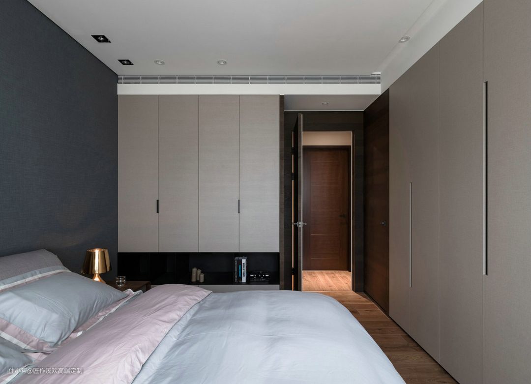 以侧面吊挂式的衣柜为例,以人的肩宽约在55~58公分来看,衣柜的深度至少要在58公分以上,如果使用门片式衣柜,因为考虑到门片厚度一般会设计60公分左右,而拉门式因为多了一道门片需考虑深度则建议为65~70公分。而没有门片的开放式衣柜只要55公分即可,适合衣柜和床距离较近的房间。