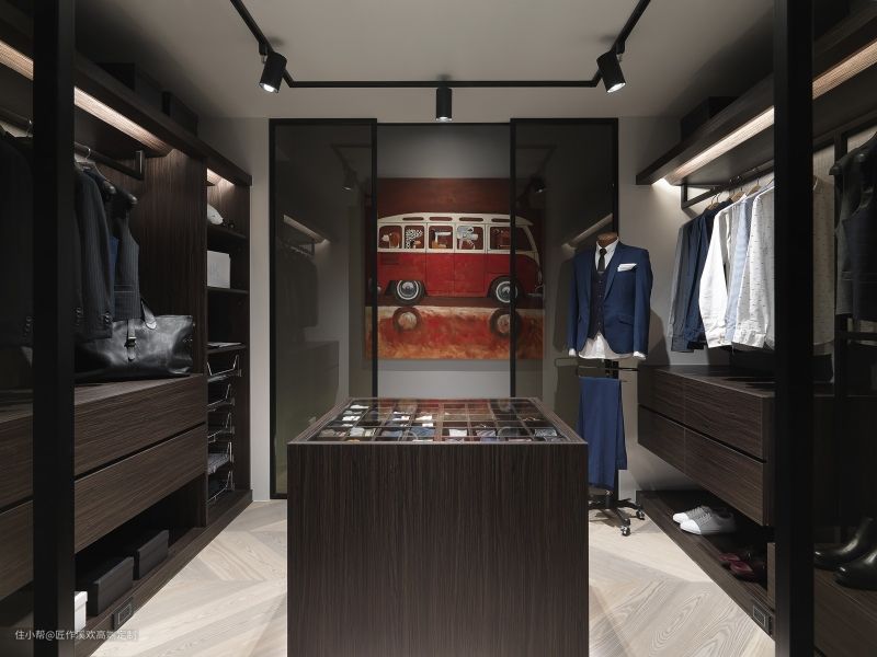 男性当领带数量过多时,可以藉由高度、深度、宽度都约为10公分大小分格的格子抽屉收纳,而女性的首饰、手表等也可以利用这样的大小分格收纳,让穿衣搭配一目了然。