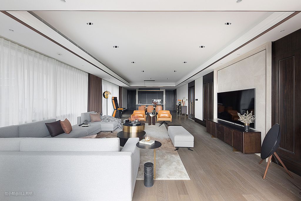 这样设计的好处在于相同空间应对不同的场景,我们可以采用不同的照明方式,以客厅为例。