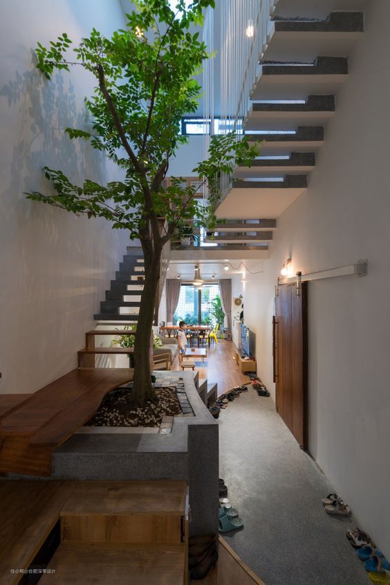 连个院子都没有,就没有机会种树了?真得这样想,那你就错了!只要你家足够大,庭院也能搬进家里,想要种树养花那还不是随便的事情,比如: