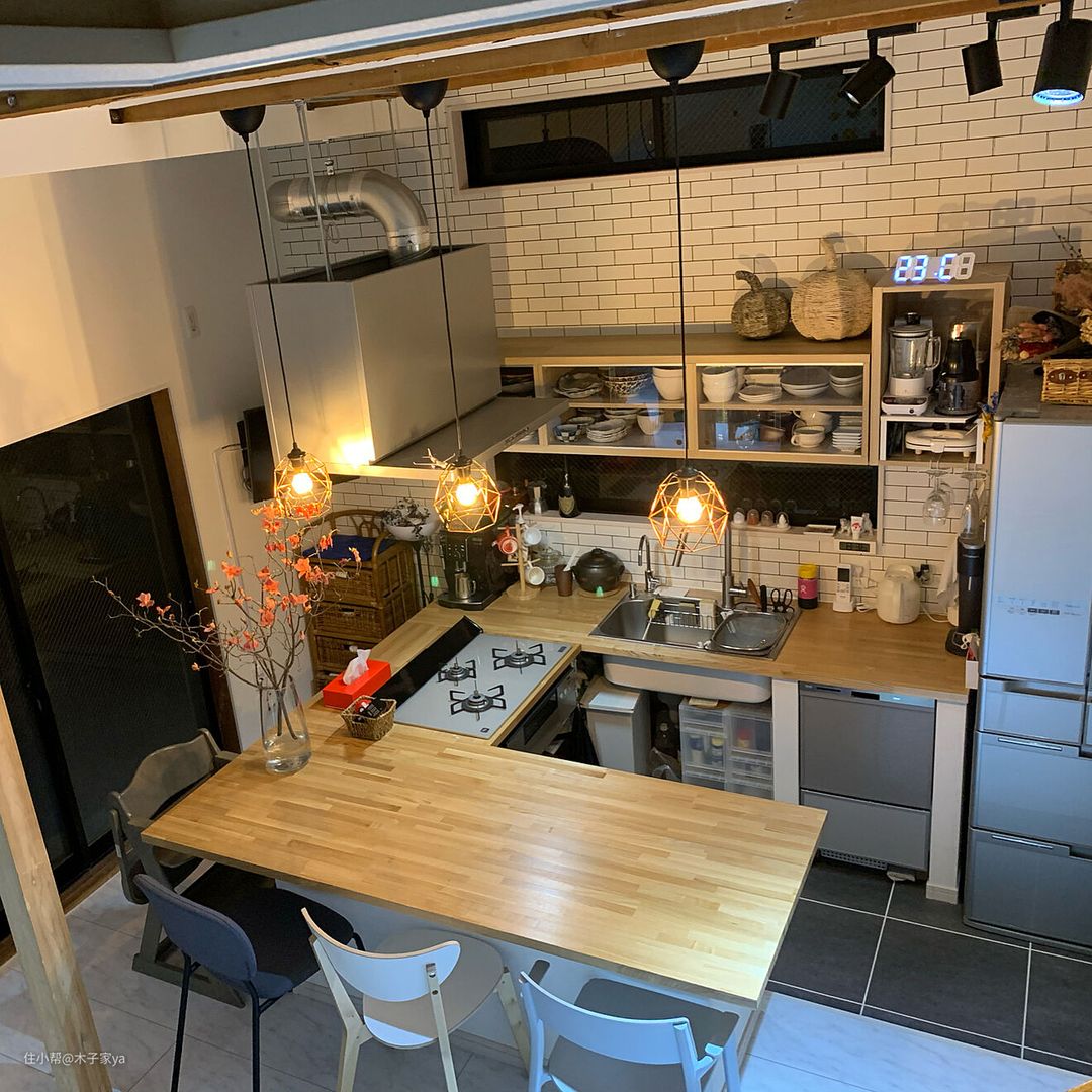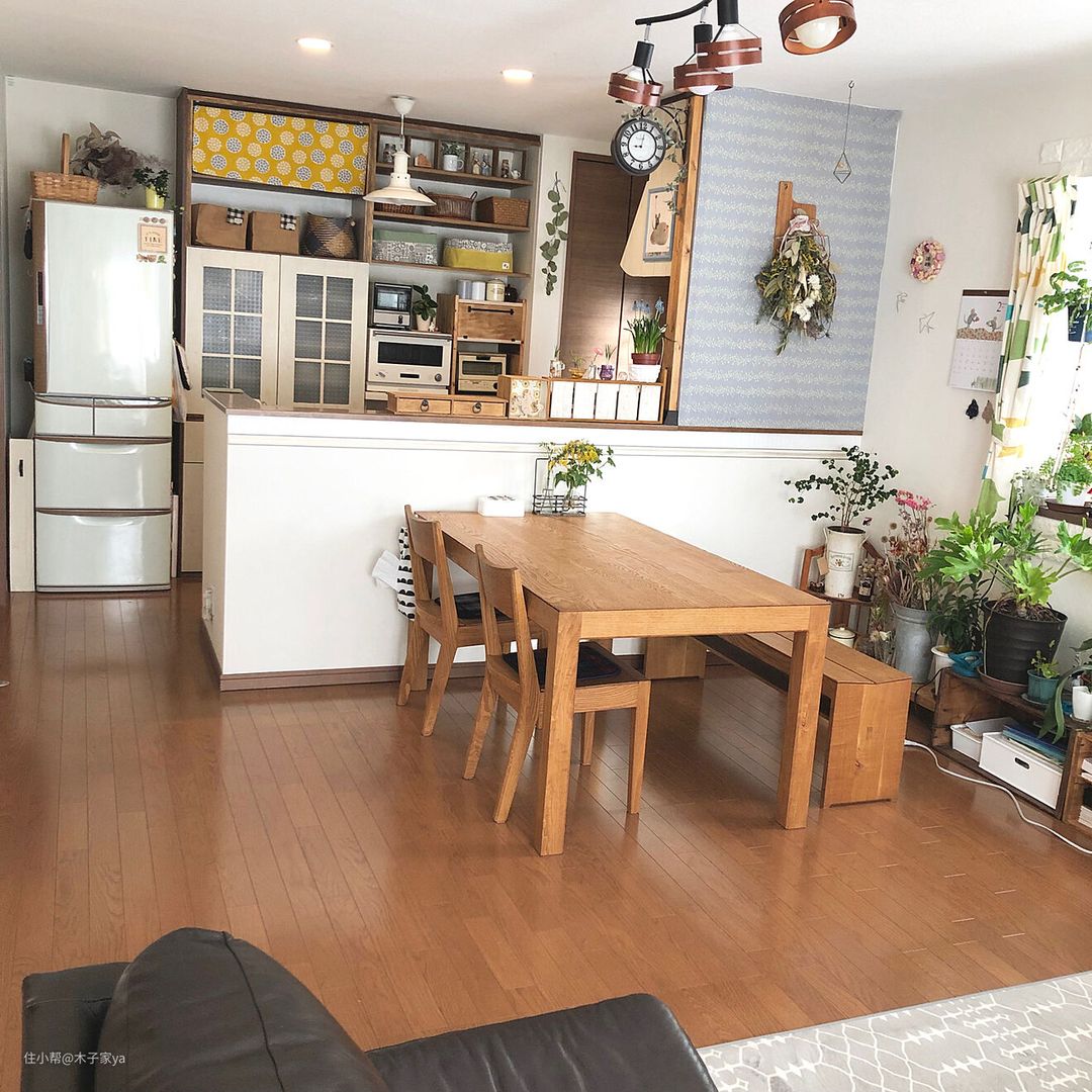 这样的客餐厨一体化设计挺实用的,特别是对于日本这样的小户型空间来说。如果你喜欢这种开阔的空间感,可以借鉴参考设计哦。