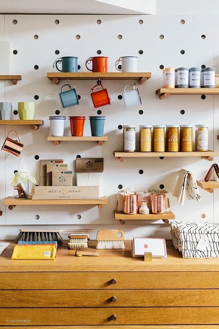 洞洞板即使不当收纳用,也可以安静的做一个背景墙,起到装饰的作用,不争不抢,点亮空间