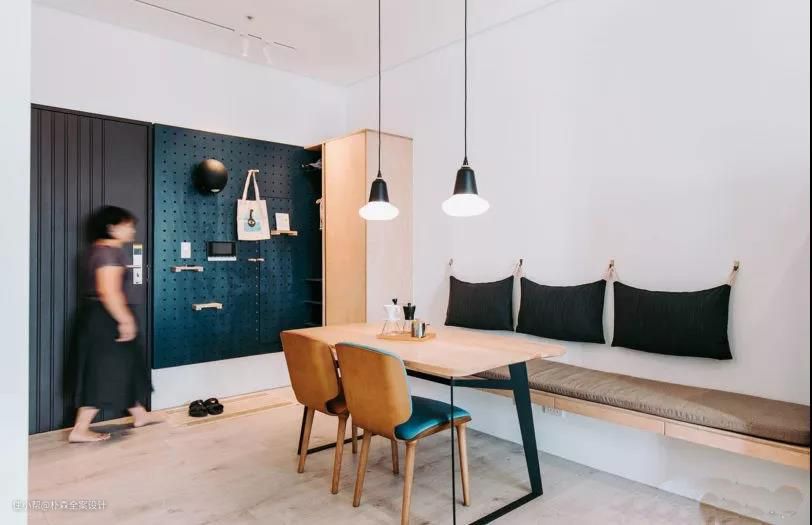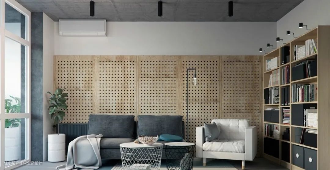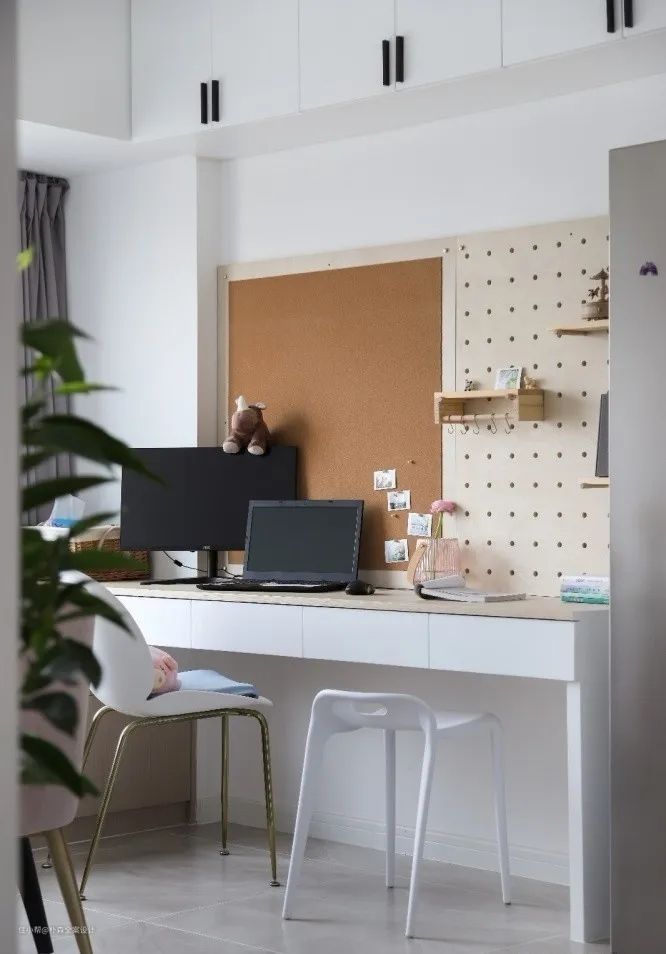 说到洞洞板,像上面儿童房里这样水平放置的洞洞板,可以起到连接两个空间的作用。如果是垂直放置的呢?洞洞板上墙,作用可不小!