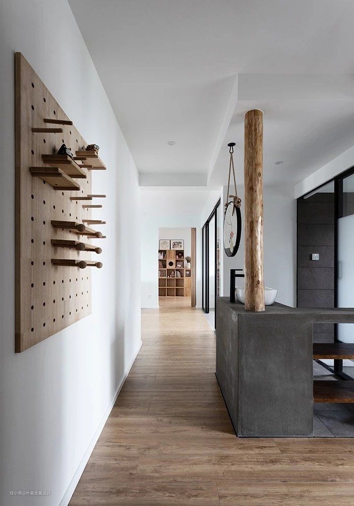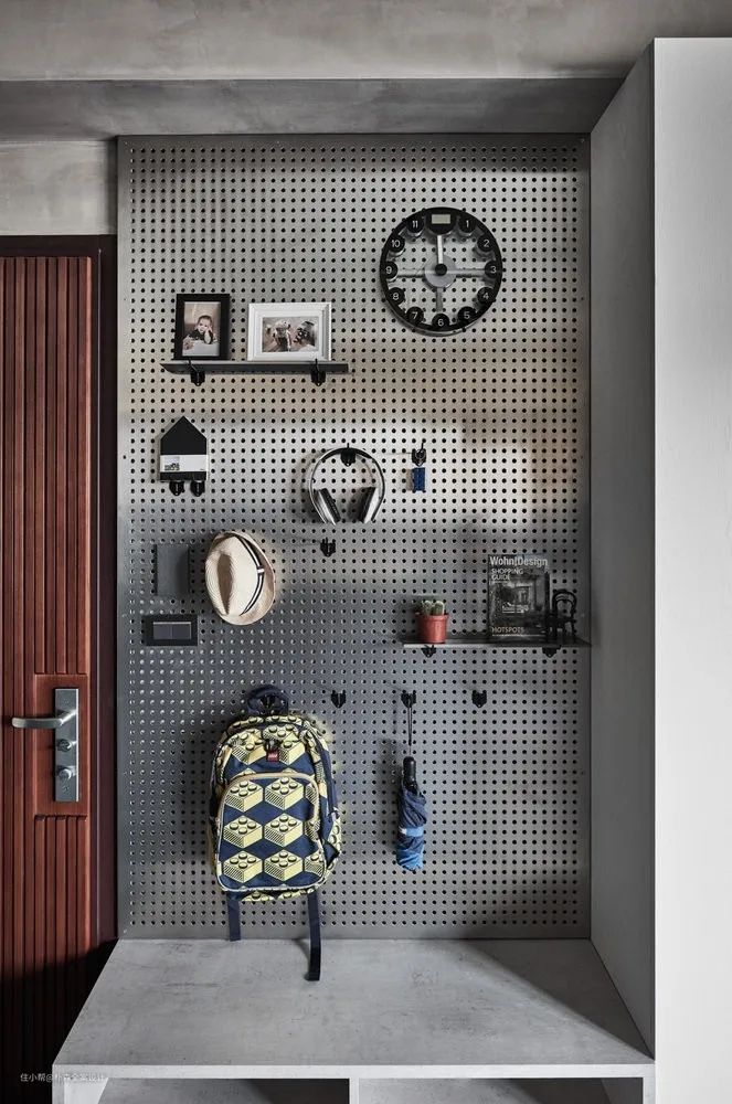 对于玄关来说,洞洞板是无敌友好的,尤其是在小户型里。即使有些户型没有玄关,也可以利用墙面空间实现玄关收纳。