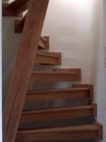 一种最常用的楼梯,在这种情况下,台阶较高(包括楼梯平台上的台阶),以占用较少的平面图空间。平台的一部分也被用作壁橱。