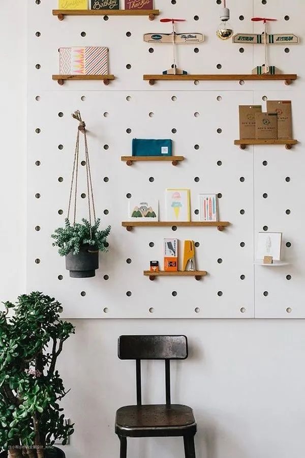 洞洞板即使不当收纳用,也可以安静的做一个背景墙,起到装饰的作用,不争不抢,点亮空间