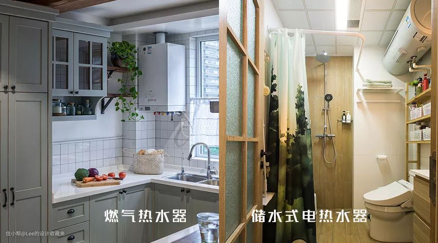 燃气热水器体积小,但是一般要装在厨房,或者方便接燃气的位置,使用时噪音比较大,点火都会有吧嗒吧嗒的声音;电热水器体积比较大,要有足够的安装空间,一般颜值上略逊一筹,可半包到吊顶里。