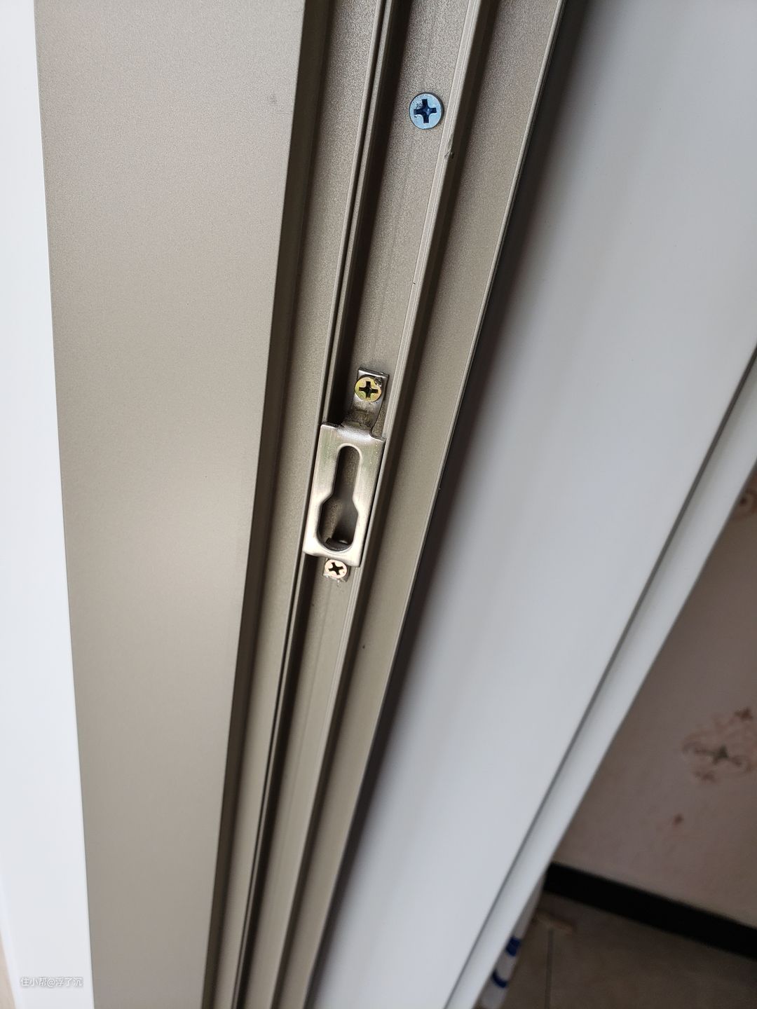 在主卧阳台,看到业主已经装好了一套推拉门(业主在我家选的厨房位置推拉门和两个卫生间的平开门)。为了和我们亿合的做对比,我拍了视频,结果这文章里没法插入视频,上几张细节照片大家看看吧。