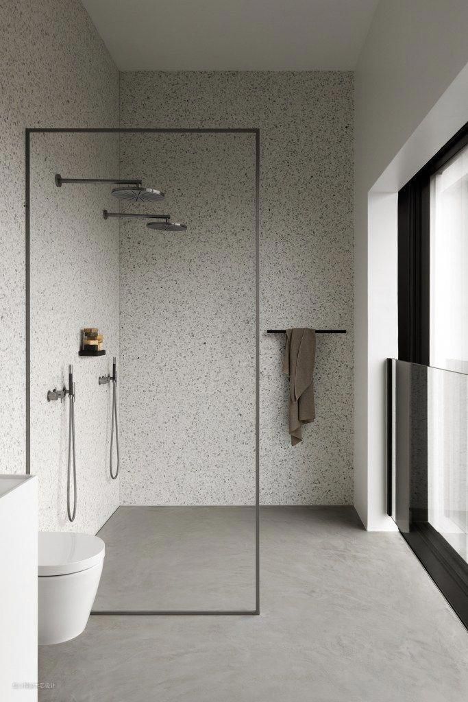 在卫生间的装修中,水磨石砖也是用的挺多的,不用复杂的设计,就能有丰富的视觉效果。