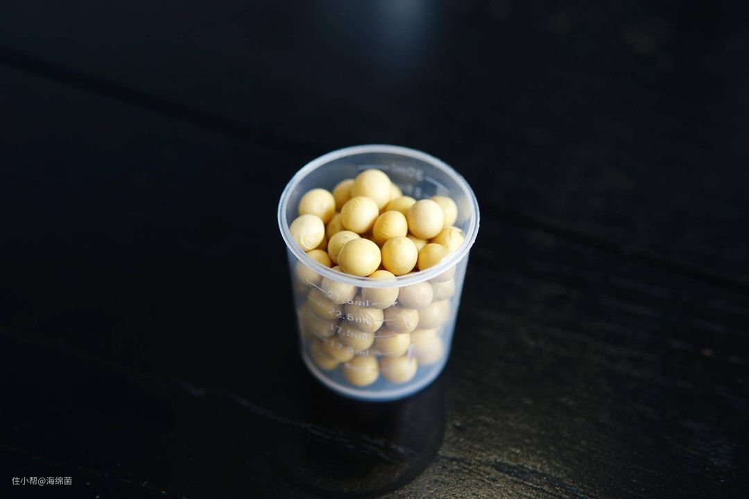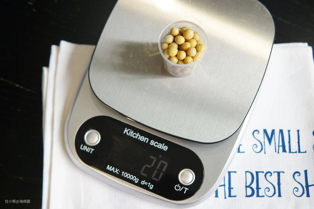 黄豆用机器附带的小量杯满杯就好,称了一下刚好20g,偶有上下也无所谓。