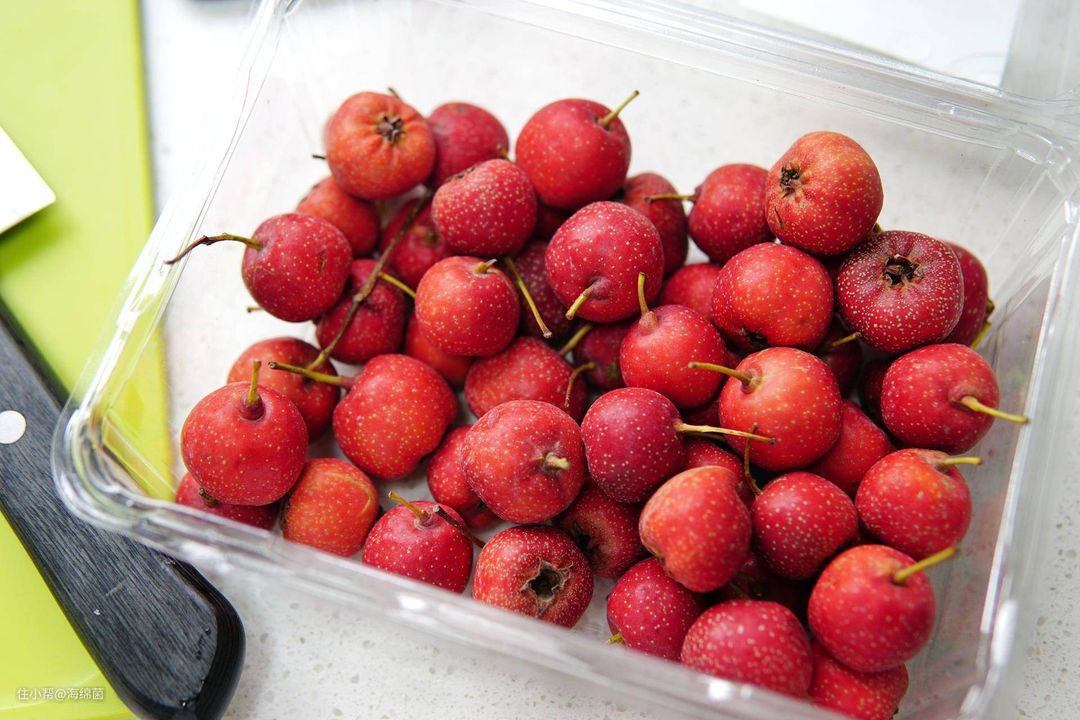 取6颗山楂洗净,不用去表皮,直接切块就好,中间的核去掉,胡萝卜20g左右,切块就好。