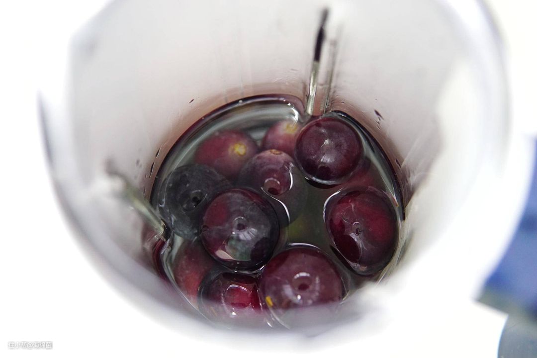 加入破壁机,葡萄加入到刻度处即可,加入一些纯水,选择果汁程序搅打均匀。