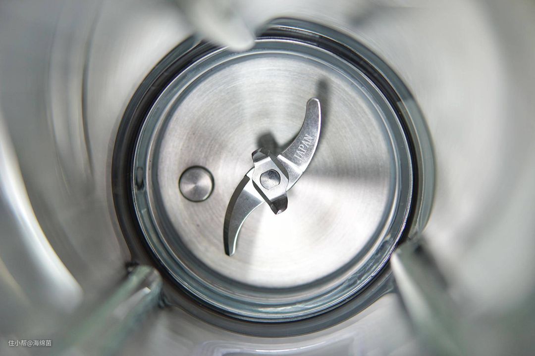 下图可以看到刀头上Japan字样,s型平行刀头横向切碎食材,再叠加垂直方向的刀头纵向切割,从而达到更彻底的切割研磨效果。