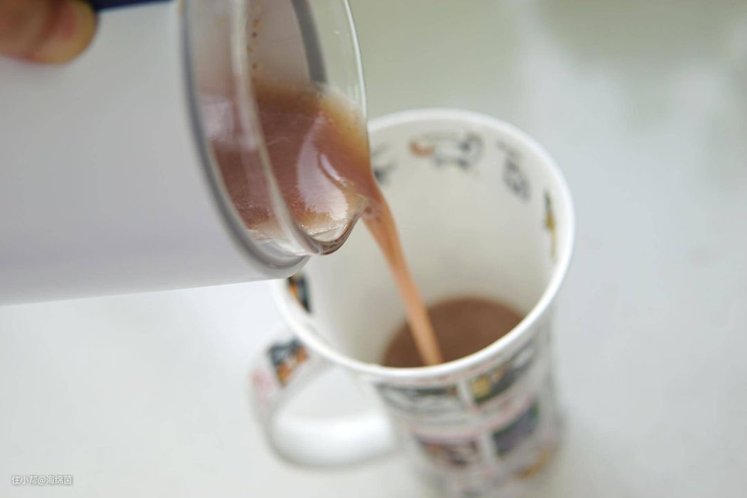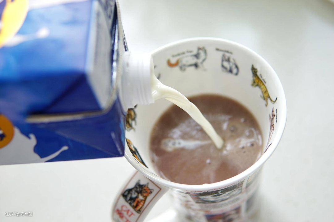 随后再冲入适量牛奶,牛奶的多寡可以自己调整。