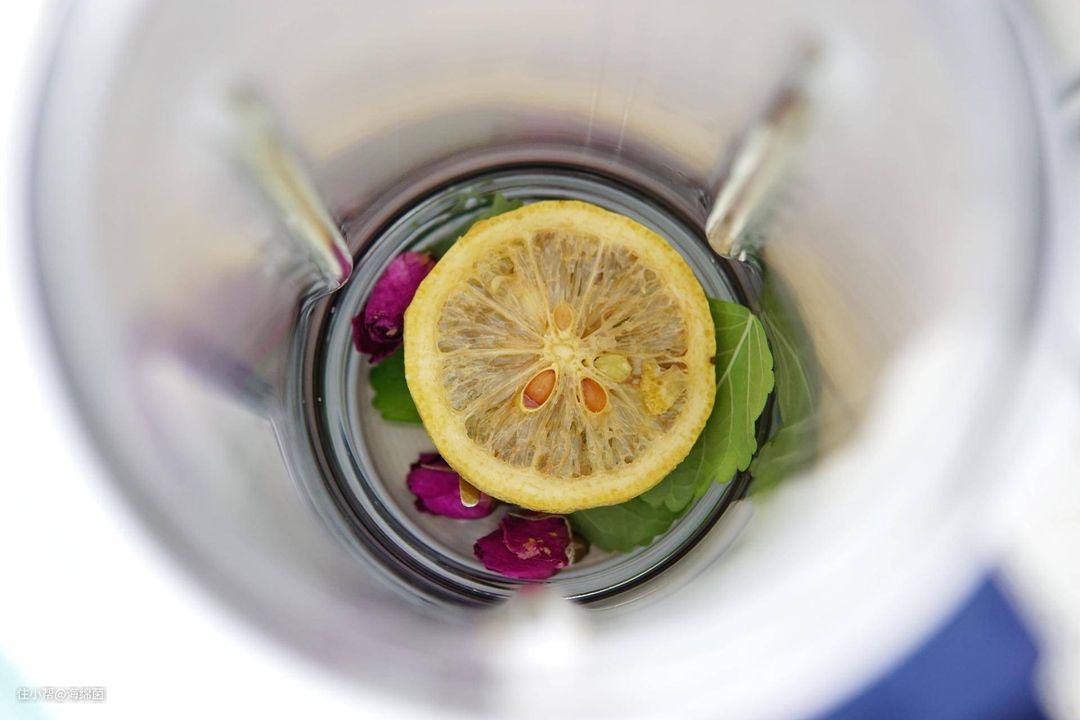 取一片干柠檬,几朵玫瑰花茶,几片新鲜的薄荷叶。