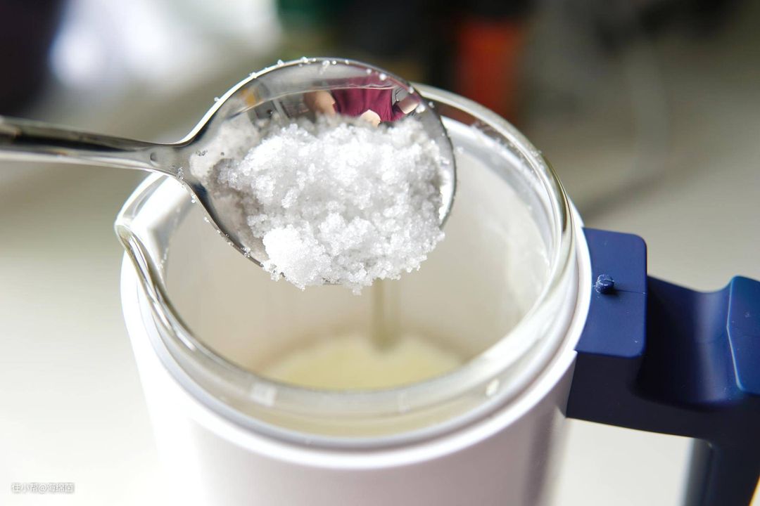 一个豆浆程序走完之后开盖,加入一些白糖,我加的是绵白糖所以看起来挺多的,糖量自己掌控,基本一个小汤匙就可以。