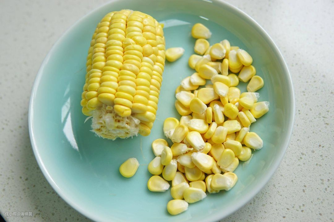 剥下大约60g的玉米粒,如果想浓一点的话,80g也可以。