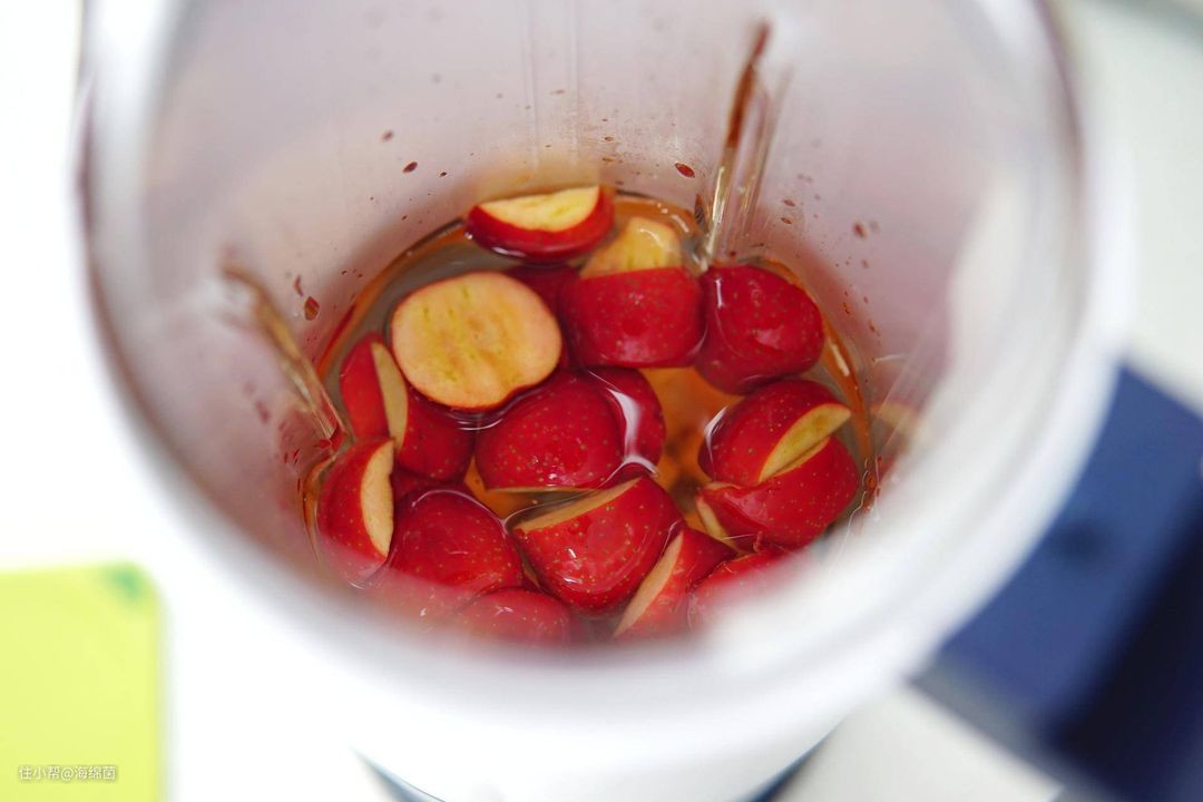 花茶程序之后再走一个果蔬程序,把山楂和胡萝卜打细腻了,这个步骤可加入适量的糖来调味。