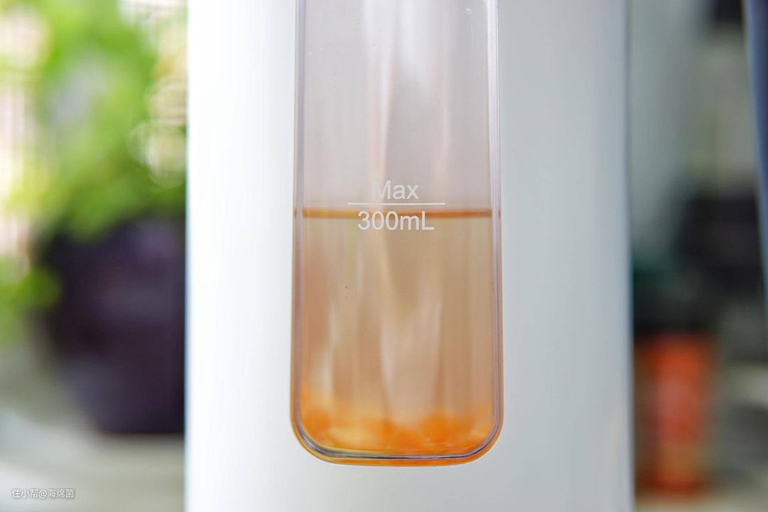 因为养乐多比较甜,加一瓶就够了,如果水量不够,可以再加一点纯水,再开启果汁模式。