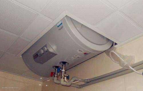 1.卫生间装电热水器可以选择这种方式,如下图(图中热水器插座可以安在吊顶里面,现在的水管都走暗管在墙里面,所以装完后很美观),这样的好处有两个,第一省空间,因为一般电热水器的个头都挺大的,选择下面这种安装方式可以省很多空间。第二看着不那么压抑,因为老房的层高都在两米四五的样子,而卫生间因为要做集成铝扣板吊顶需要下吊20公分,吊完顶之后只有两米多的高度,如果再装个电热水器,空间很受影响,所以可以考虑下图这种安装方式,虽然丑一点点,但是很省空间,那如果您家卫生间空间够大,那就无所谓啦,但是建议优先考虑安装在承重墙上面,这样是比较安全的。