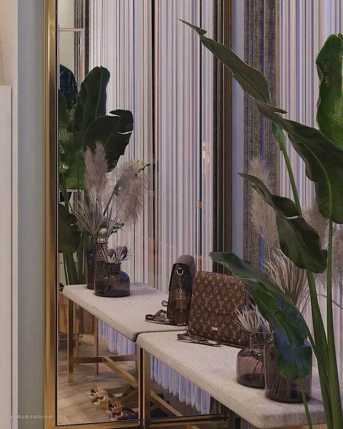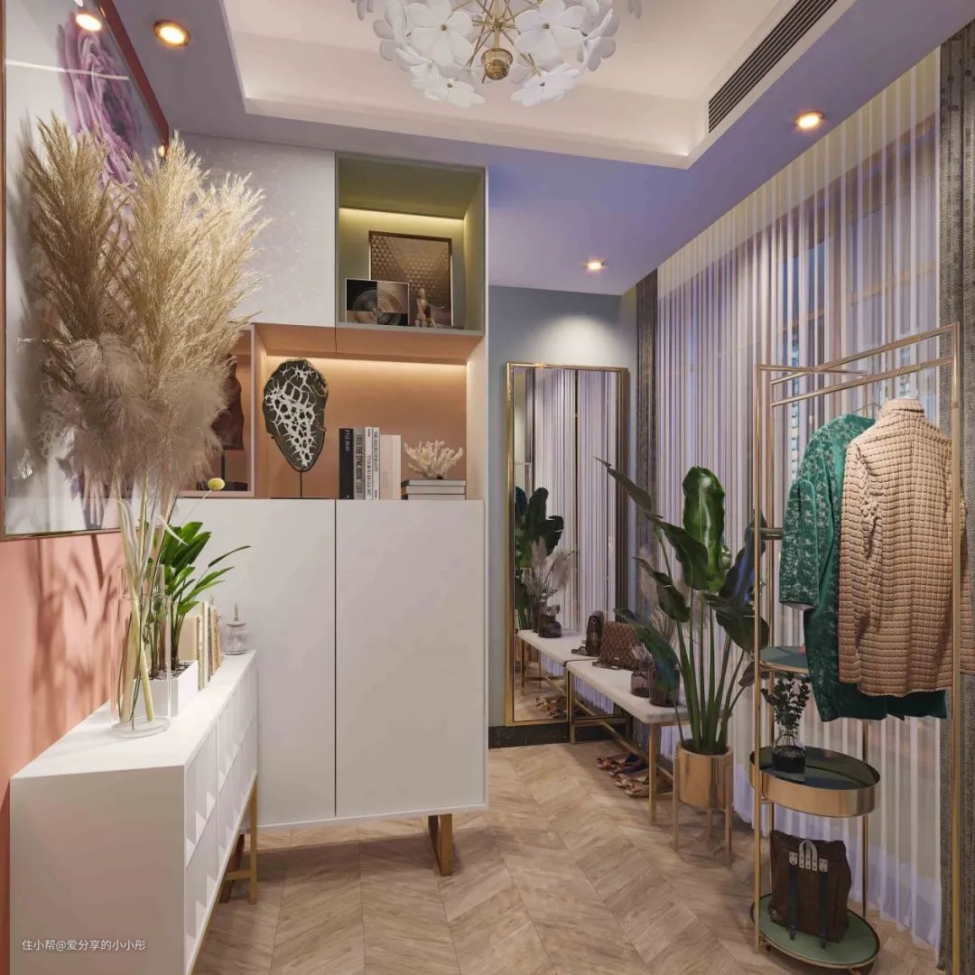 注意:衣帽间与穿衣镜是绝配,摆放的位置也没有太多讲究,根据个人习惯便可。