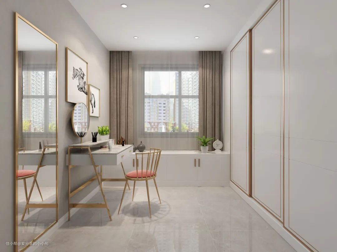 衣柜门:要是不在乎风水问题的话,衣柜门都可以直接做成镜面。不过,这波操作要以居住者的喜好以及舒适度为准。
