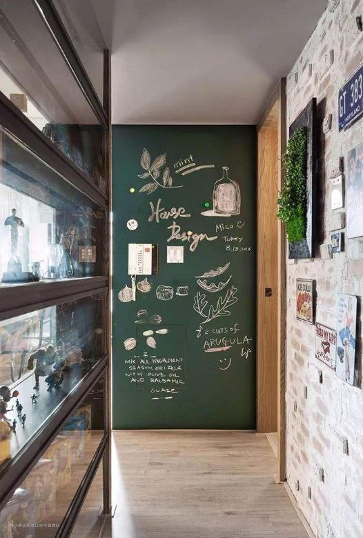 走廊还是个重灾区,什么重灾区呢?就是孩子孩子会走了会画了。这个时候基本上走廊会给你画的乱七八糟,那有人说有能不能做一个黑板我看可以。如果是有心的人,可以在这个一米高以下做成黑板墙,一面墙做了黑板墙也是可以的。但是也有那种特殊的乳胶漆,可以擦掉这种的也是可以的。可以根据自己的需求来做选择。