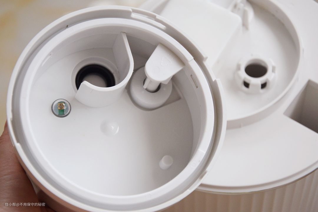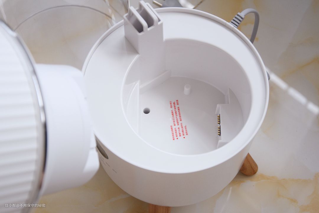 打开小熊落地式加湿器可以看到内部,6升大容量,考虑到用户来回加水很麻烦,上加水省心,省力!根据官方介绍加湿可达25小时之久,这方面我没有具体的计算过时间,反正水箱加满,我用了很久就对了。