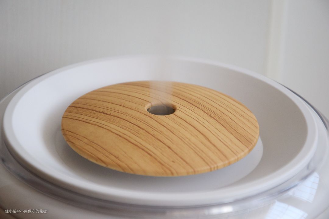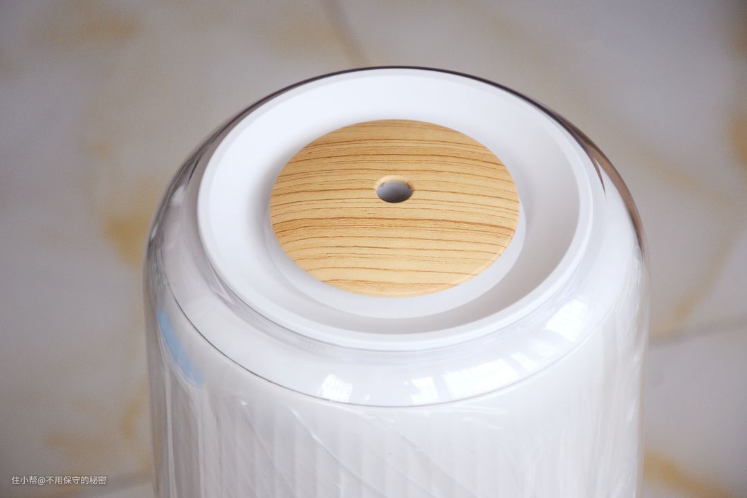 除了整体白色以外,顶部和底部均是用了自然木纹作为点缀。四角的底部还设计了防滑垫,可以有效的保证加湿器的稳定性。