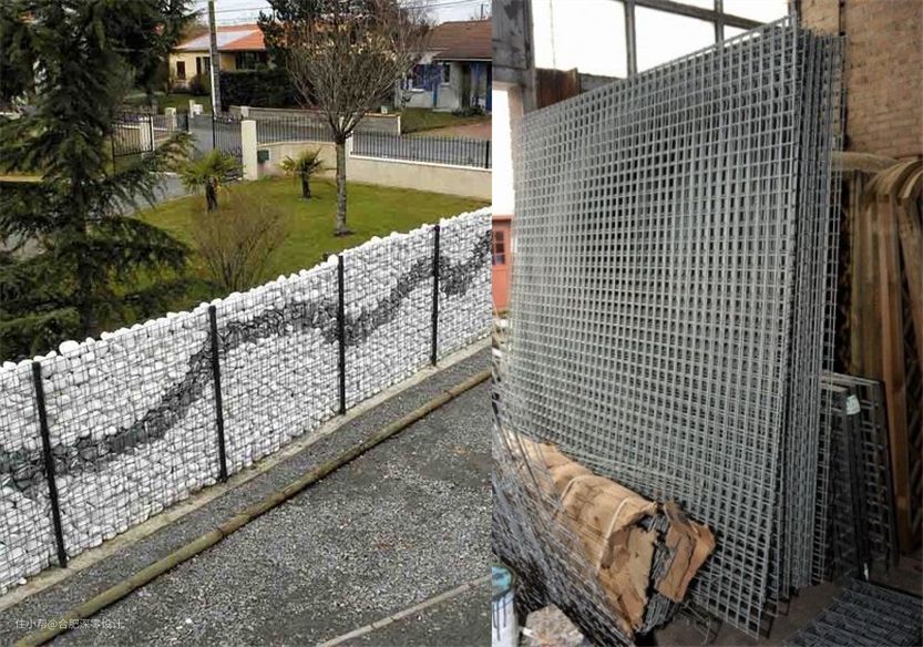 或者用铁艺+石头来当立柱,也别有一番风味,至于这个石头怎么选,你自己看得中就行,铁艺网缝隙不易过大,能兜得住就好。同样的法子,还能给自家院子加个烧烤架,不用的时候压根不用收起来,放着就好!