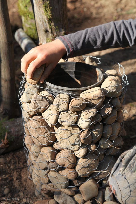 即便不做院墙,你也能做个拿来装饰下自家的花盆,随便找些小铁丝拧拧也行,提前留出花盆的位置就好。