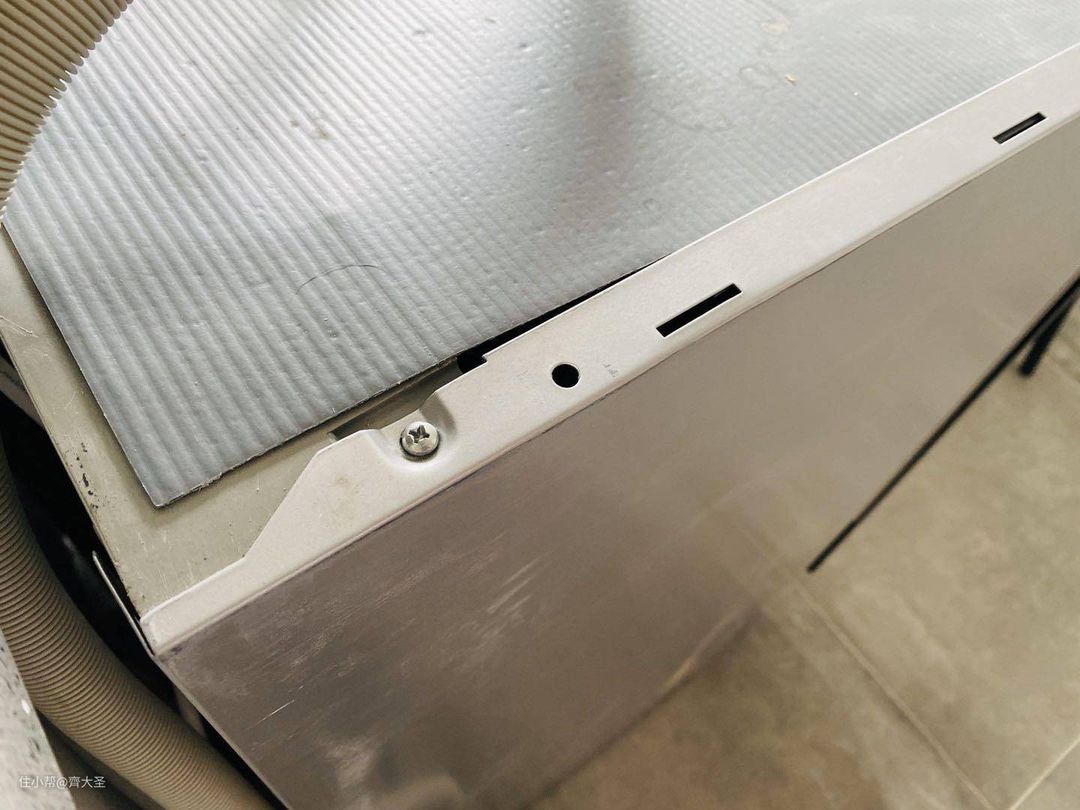 背面也设计了大面积黑色止震板,一方面在运输时保护机器,另一方面日常使用时防止内舱热量的散发,提升清洗及烘干效率,而且可以有效地减小噪声。